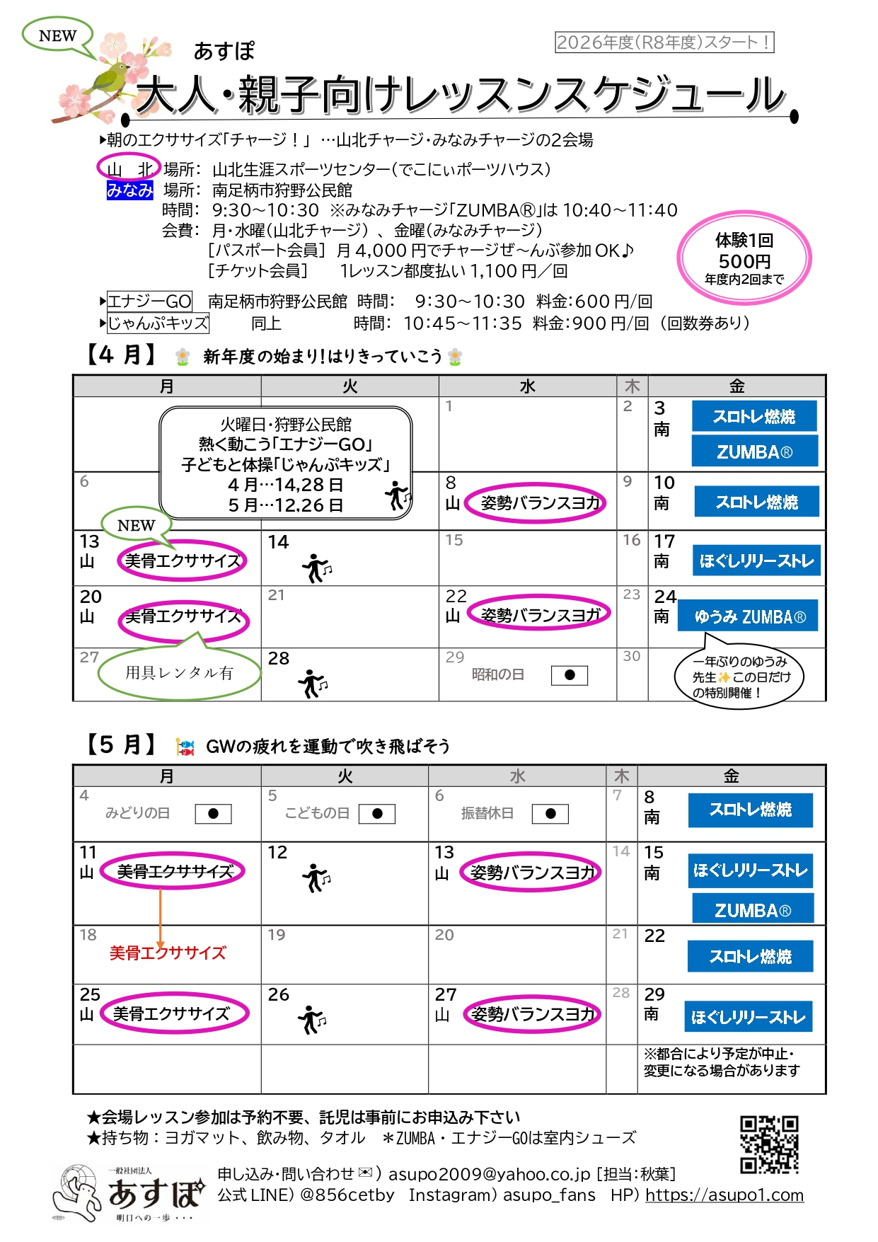【NOW】2026年4月~5月山北チャージ・みなみチャージ スケジュール